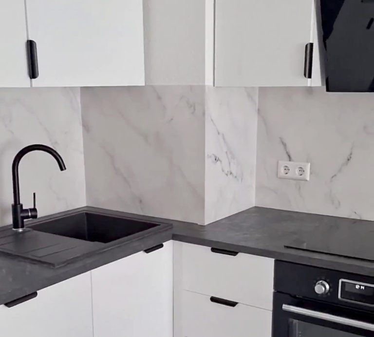WEISSER MARMOR Ein Küchen-Makeover muss nicht aufwendig sein – mit einer selbstklebenden Küchenrückwand von Stickerprofis lässt sich der Raum im